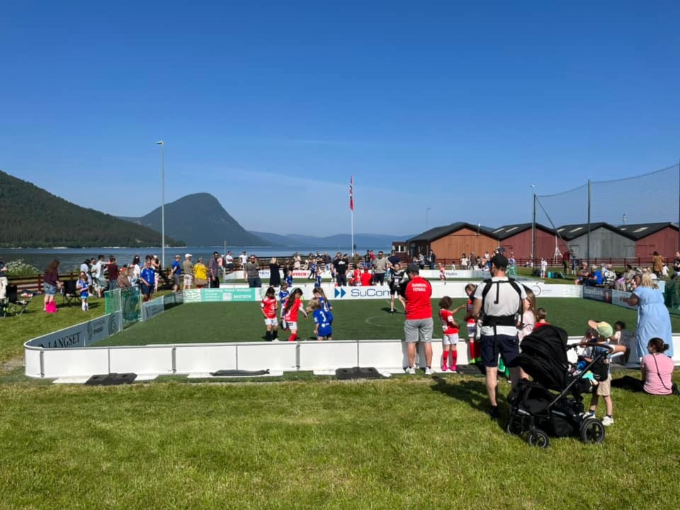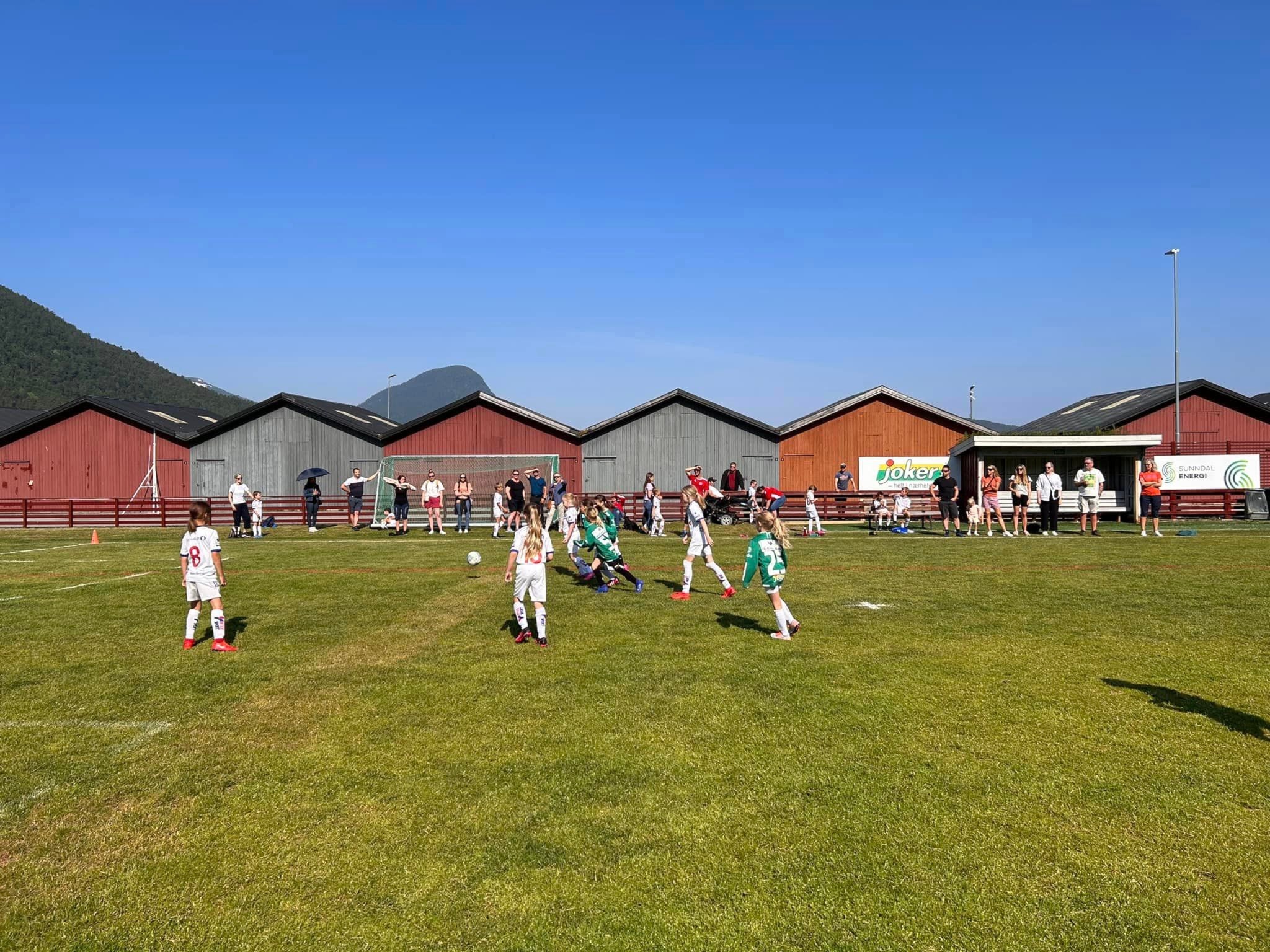 Cupen arrangeres på gress i flotte omgivelser på SpareBank1 Nordmøre Idrettspark, Ålvundfjord med